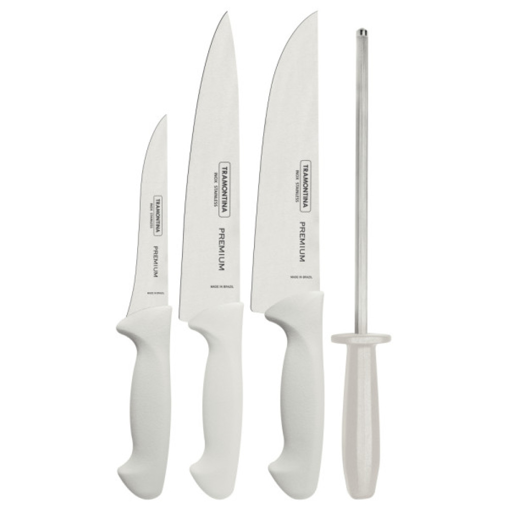 Ножі серії PREMIUM мають сучасний дизайн, а анатомічна поліпропіленова ручка має текстуру, що забезпечує комфорт і безпеку при роботі. Ідеальна V-подібна форма заточування леза гарантує точне акуратне нарізування, навіть після тривалого використання. Леза ножів виконані з нержавіючої сталі AISI 420 з товщиною 2 мм. Можна мити в посудомийній машині.