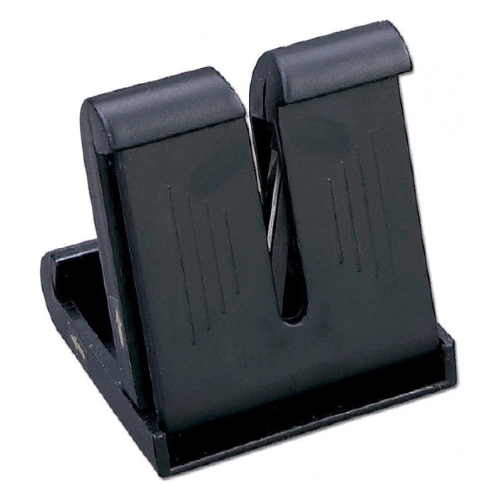 Конструкція для заточування ножів складається з міцного корпусу, виготовленого з високоякісної пластмаси чорного кольору, а також точильного елемента - металевої пластини, що має однаковий кут заточування з кутом заточування професійних ножів.