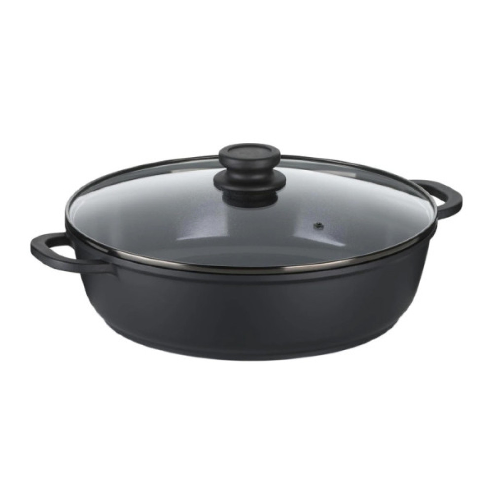 Сотейник з кришкою Kela Atura від німецького виробника посуду і начиння для кухні Kela об'ємом 5 л виготовлений з литого алюмінію. У ньому ви зможете готувати рагу, печеню, тушкувати м'ясо і тюфтельки, експериментувати з соусами.