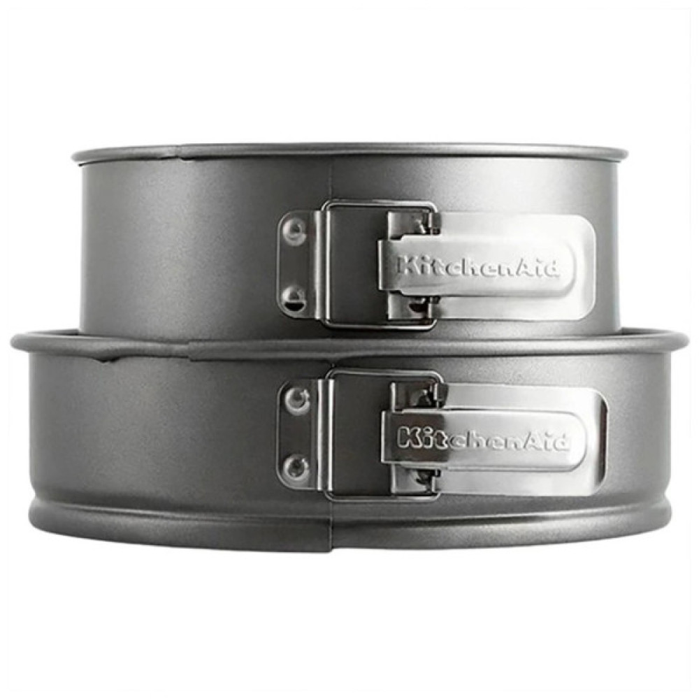 Цей набір форм KitchenAid для випікання з 2 предметів включає форми для випікання діаметром 20 см і 24 см. Вони виготовлені з високоякісної алюмінієвої сталі, яка стійка до подряпин і корозії. Антипригарне покриття без PFAS забезпечує легке видалення випічки та ідеальну форму. Сталевий лист товщиною 0,8 мм нагрівається рівномірно, не гнеться і не деформується.