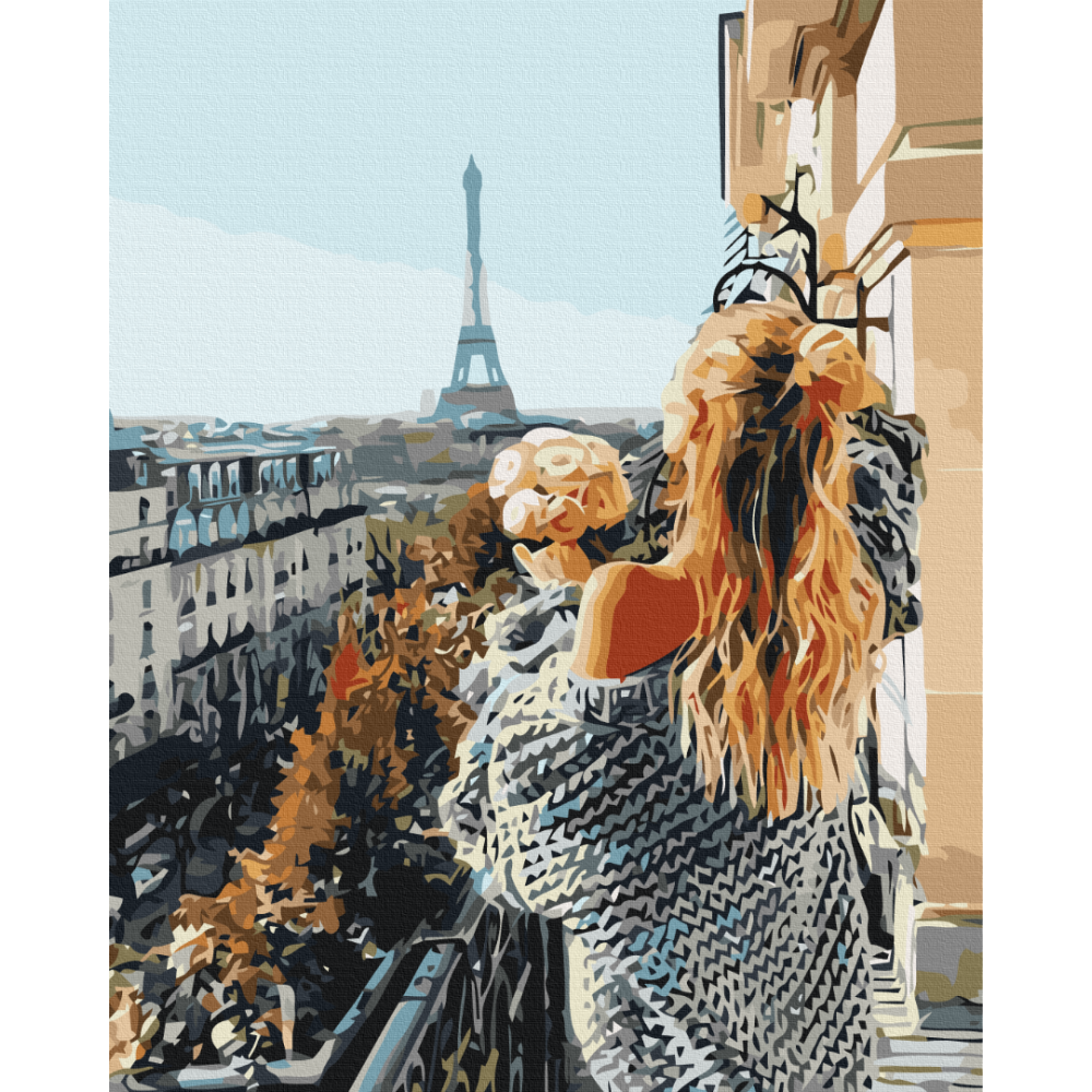 бполотно на лляній основі та дерев'яному підрамнику з нанесеною пронумерованою схемою майбутньої картини. Всі сегменти додатково пофарбовані в тон кольорів, якими буде зафарбовувати полотно
