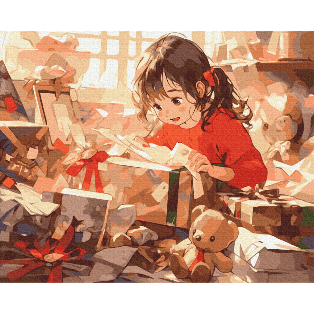 бполотно на лляній основі та дерев'яному підрамнику з нанесеною пронумерованою схемою майбутньої картини. Всі сегменти додатково пофарбовані в тон кольорів, якими буде зафарбовувати полотно