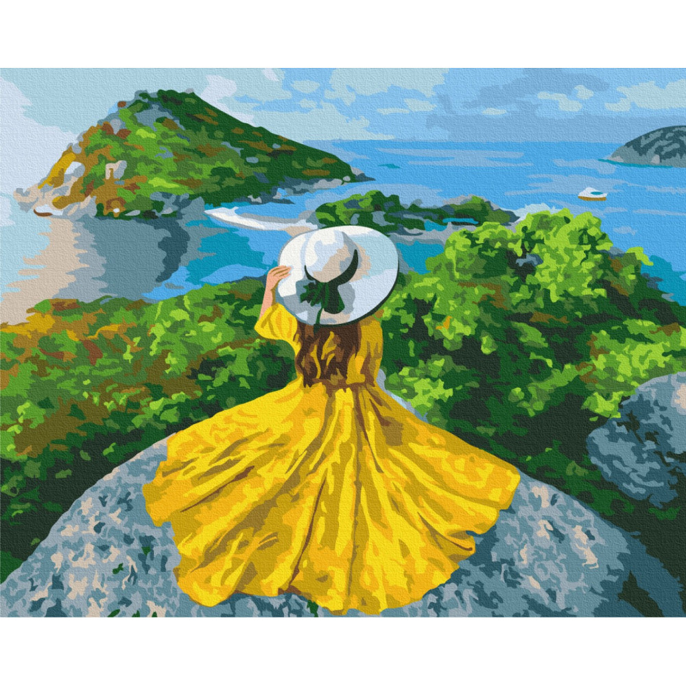 бполотно на лляній основі та дерев'яному підрамнику з нанесеною пронумерованою схемою майбутньої картини. Всі сегменти додатково пофарбовані в тон кольорів, якими буде зафарбовувати полотно