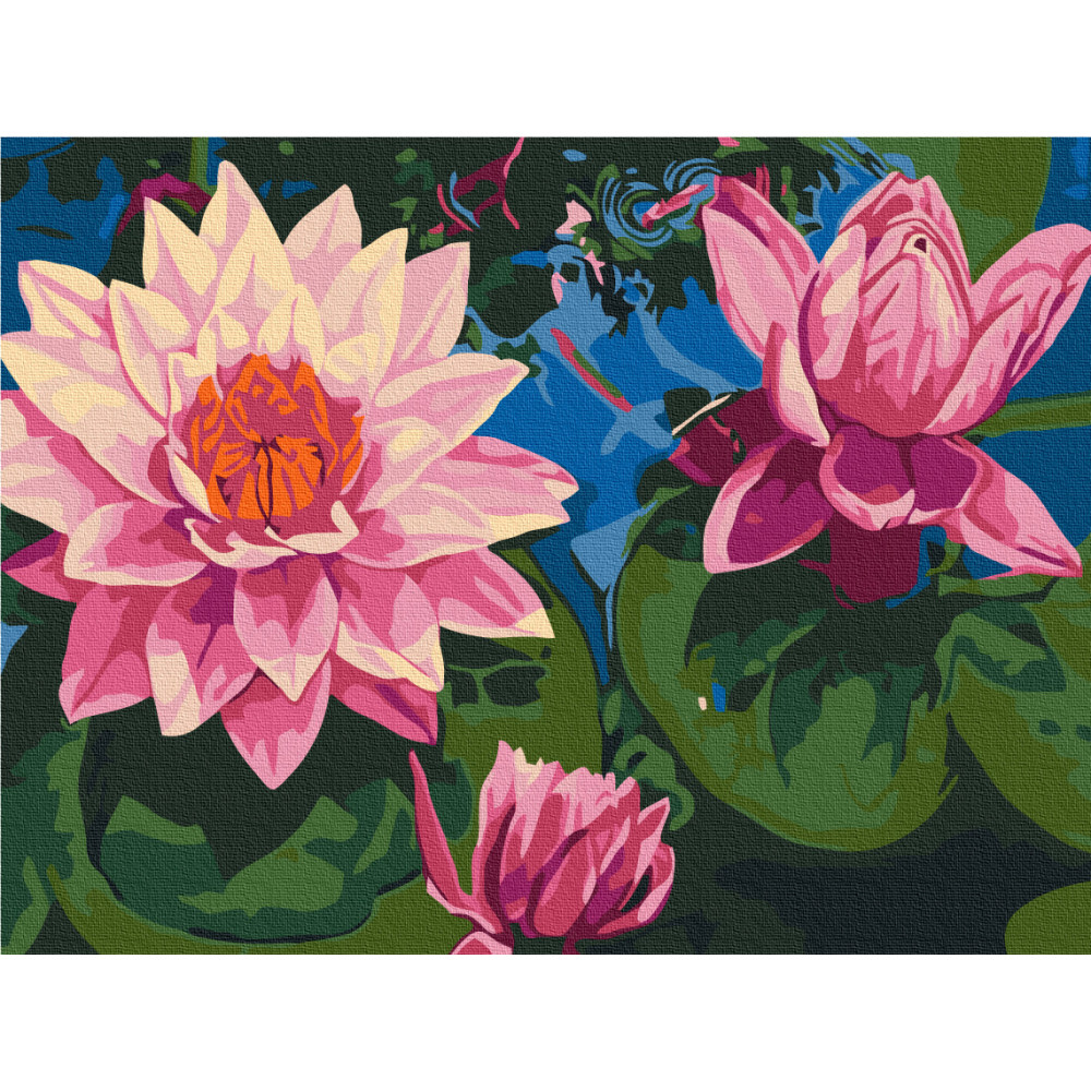 бполотно на лляній основі та дерев'яному підрамнику з нанесеною пронумерованою схемою майбутньої картини. Всі сегменти додатково пофарбовані в тон кольорів, якими буде зафарбовувати полотно