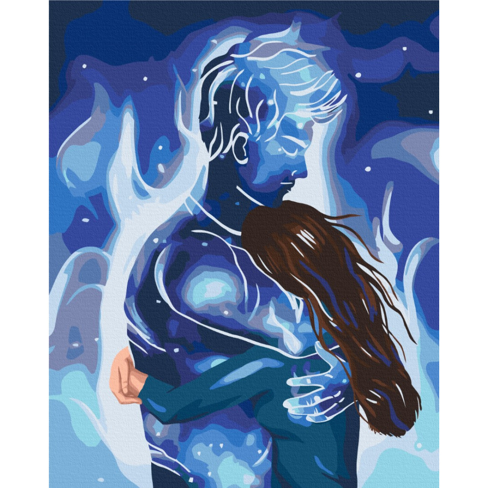 бполотно на лляній основі та дерев'яному підрамнику з нанесеною пронумерованою схемою майбутньої картини. Всі сегменти додатково пофарбовані в тон кольорів, якими буде зафарбовувати полотно