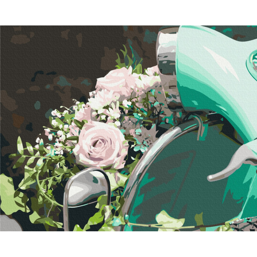 бполотно на лляній основі та дерев'яному підрамнику з нанесеною пронумерованою схемою майбутньої картини. Всі сегменти додатково пофарбовані в тон кольорів, якими буде зафарбовувати полотно