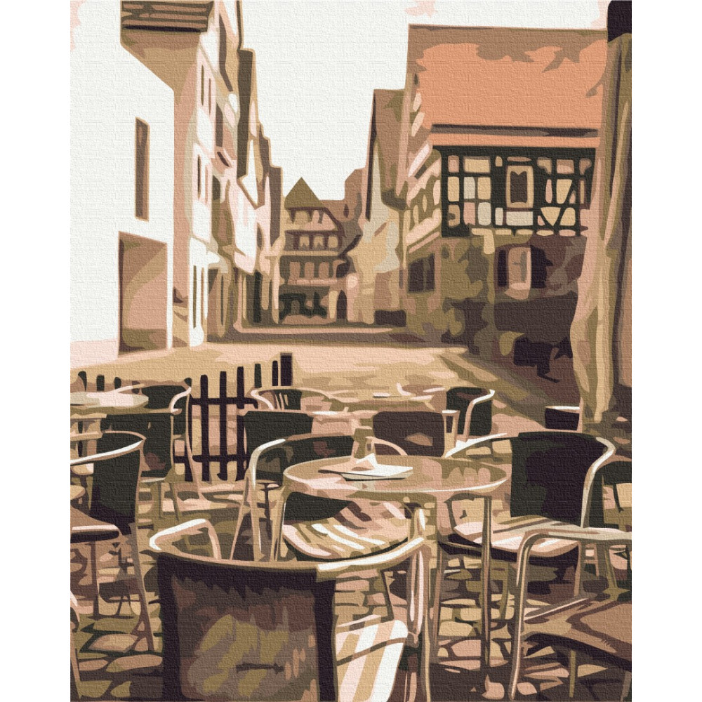 бполотно на лляній основі та дерев'яному підрамнику з нанесеною пронумерованою схемою майбутньої картини. Всі сегменти додатково пофарбовані в тон кольорів, якими буде зафарбовувати полотно