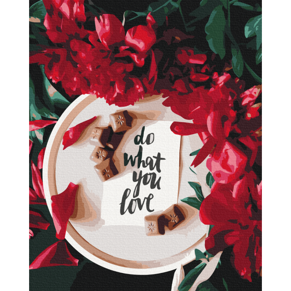 бполотно на лляній основі та дерев'яному підрамнику з нанесеною пронумерованою схемою майбутньої картини. Всі сегменти додатково пофарбовані в тон кольорів, якими буде зафарбовувати полотно
