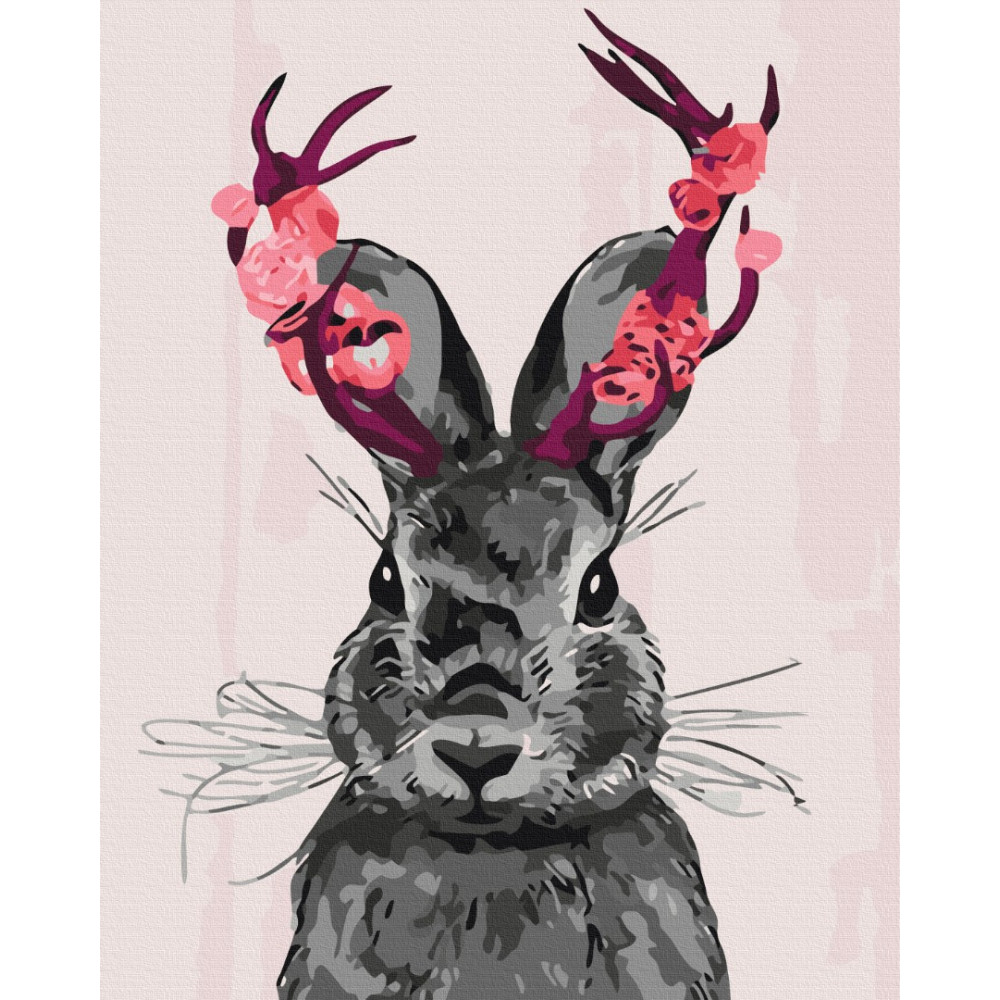 бполотно на лляній основі та дерев'яному підрамнику з нанесеною пронумерованою схемою майбутньої картини. Всі сегменти додатково пофарбовані в тон кольорів, якими буде зафарбовувати полотно