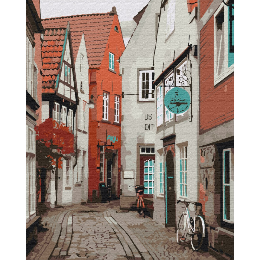 бполотно на лляній основі та дерев'яному підрамнику з нанесеною пронумерованою схемою майбутньої картини. Всі сегменти додатково пофарбовані в тон кольорів, якими буде зафарбовувати полотно