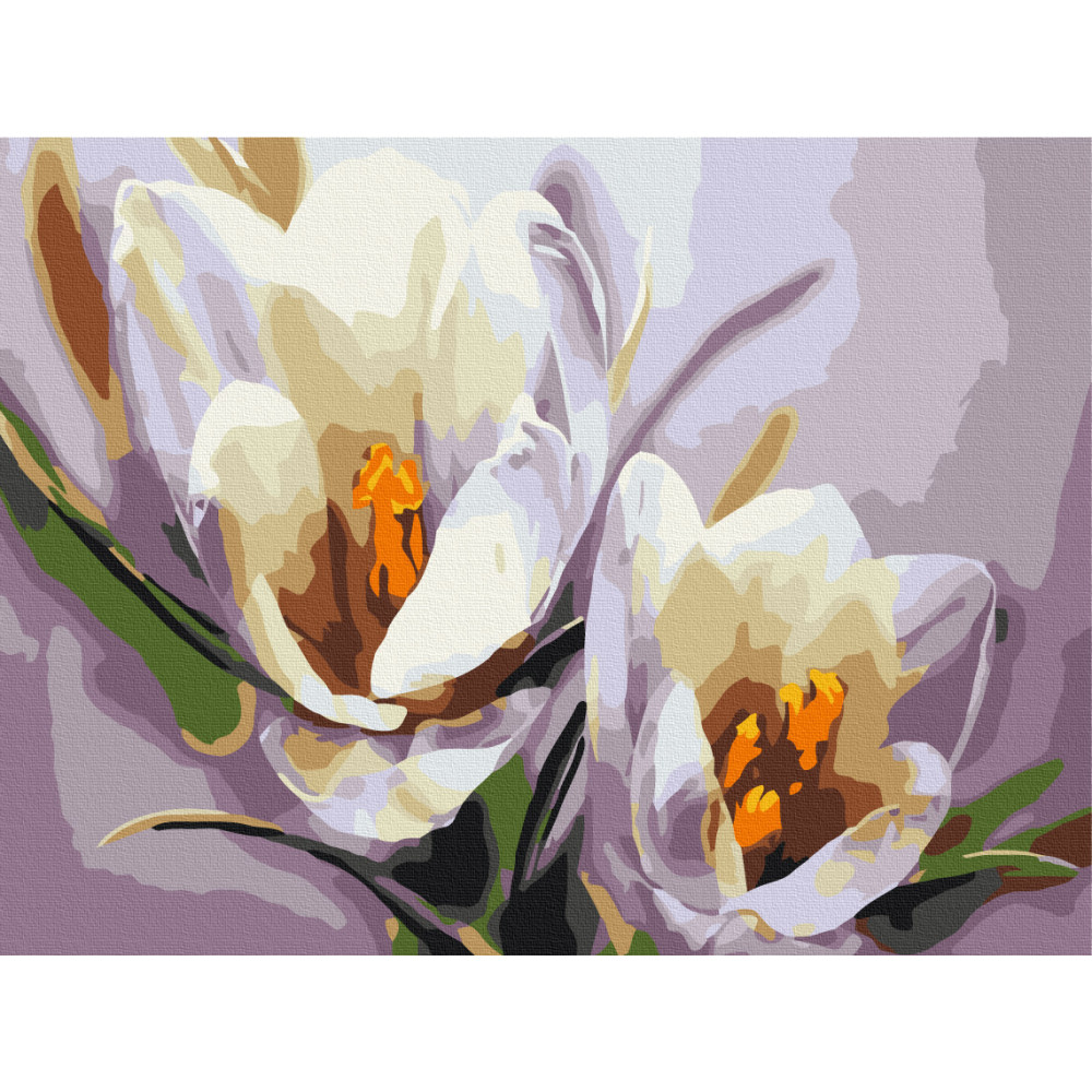 бполотно на лляній основі та дерев'яному підрамнику з нанесеною пронумерованою схемою майбутньої картини. Всі сегменти додатково пофарбовані в тон кольорів, якими буде зафарбовувати полотно