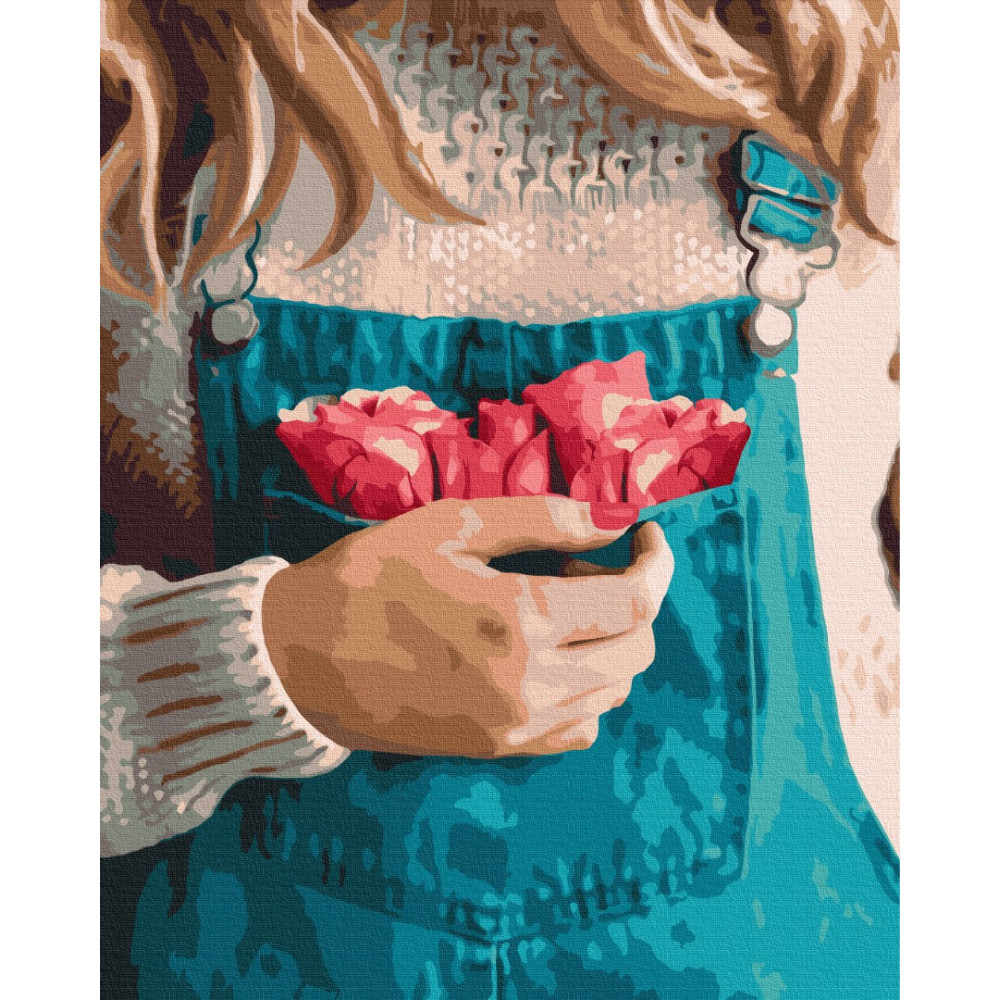 бполотно на лляній основі та дерев'яному підрамнику з нанесеною пронумерованою схемою майбутньої картини. Всі сегменти додатково пофарбовані в тон кольорів, якими буде зафарбовувати полотно