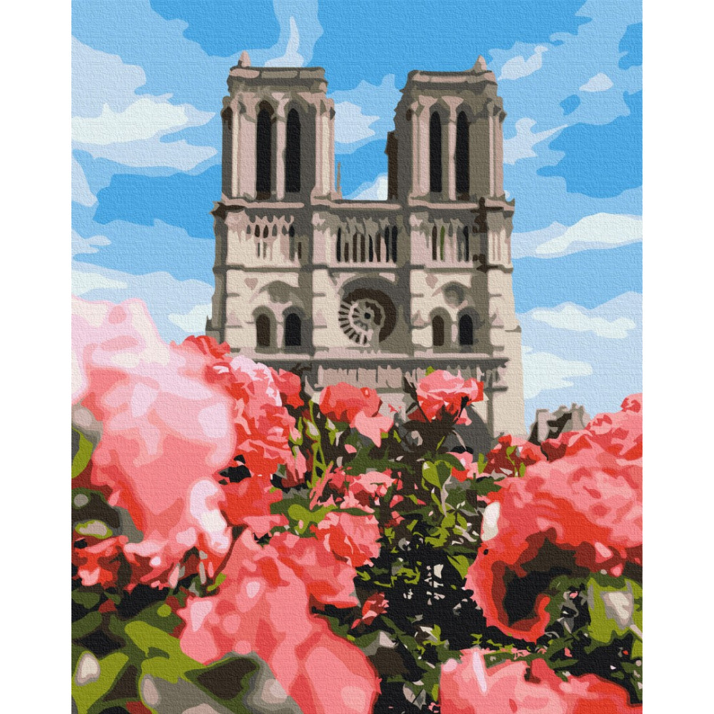 бполотно на лляній основі та дерев'яному підрамнику з нанесеною пронумерованою схемою майбутньої картини. Всі сегменти додатково пофарбовані в тон кольорів, якими буде зафарбовувати полотно