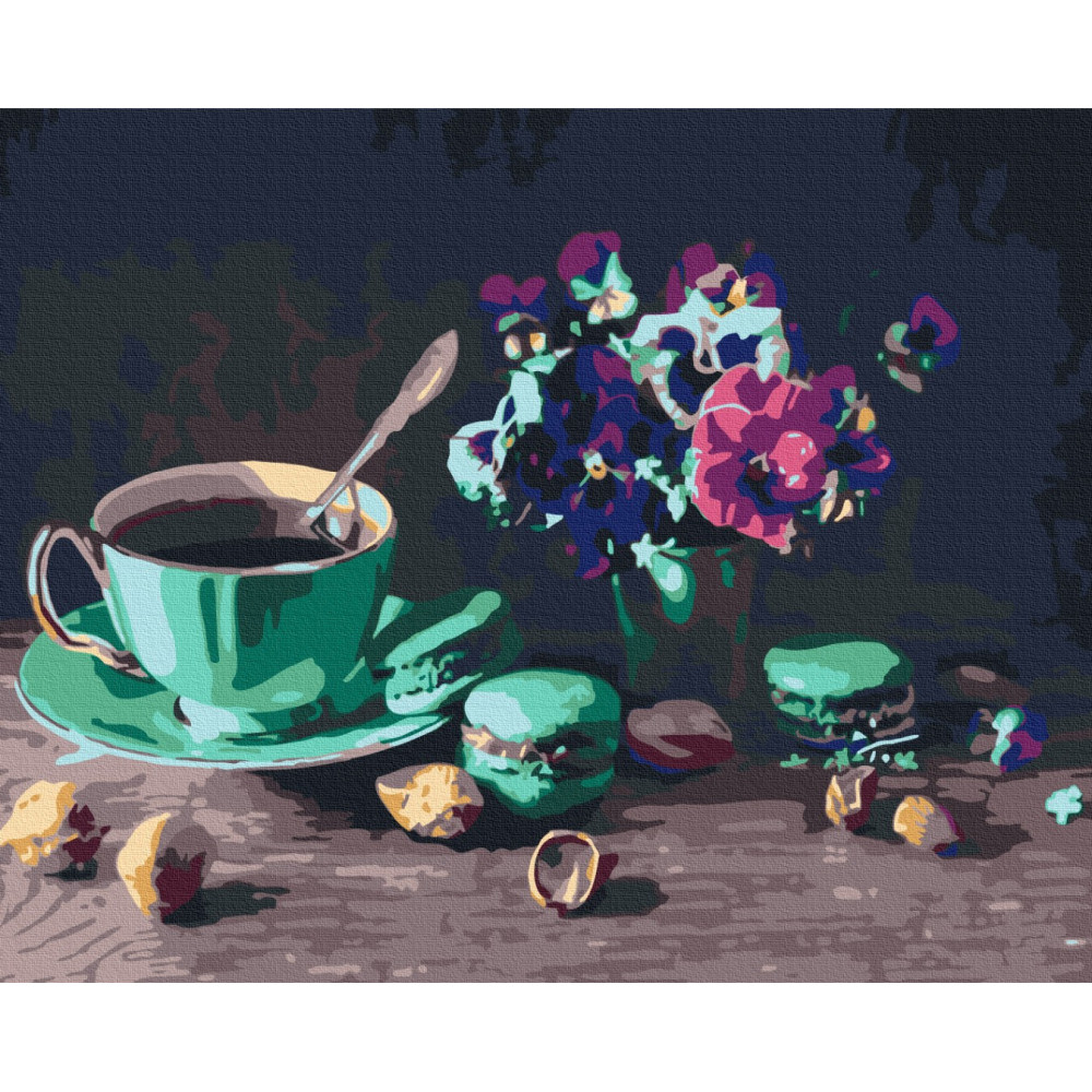 бполотно на лляній основі та дерев'яному підрамнику з нанесеною пронумерованою схемою майбутньої картини. Всі сегменти додатково пофарбовані в тон кольорів, якими буде зафарбовувати полотно