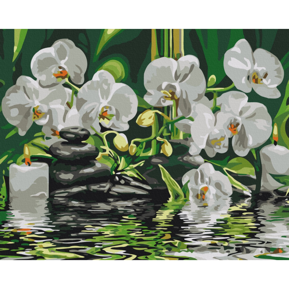 бполотно на лляній основі та дерев'яному підрамнику з нанесеною пронумерованою схемою майбутньої картини. Всі сегменти додатково пофарбовані в тон кольорів, якими буде зафарбовувати полотно