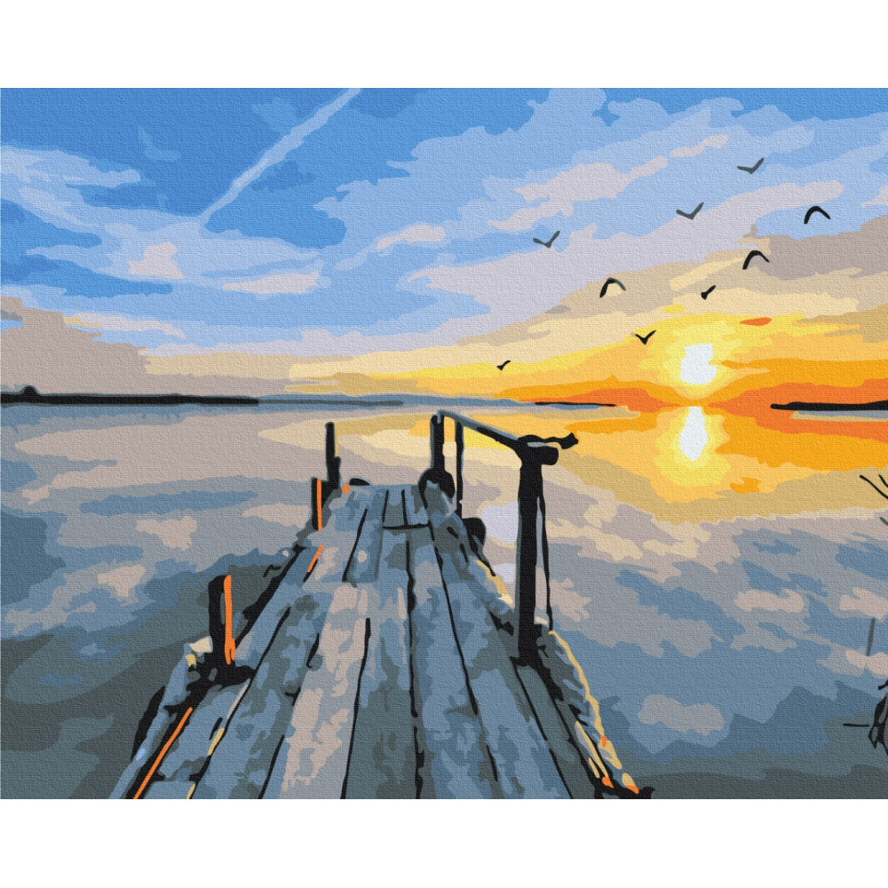 бполотно на лляній основі та дерев'яному підрамнику з нанесеною пронумерованою схемою майбутньої картини. Всі сегменти додатково пофарбовані в тон кольорів, якими буде зафарбовувати полотно