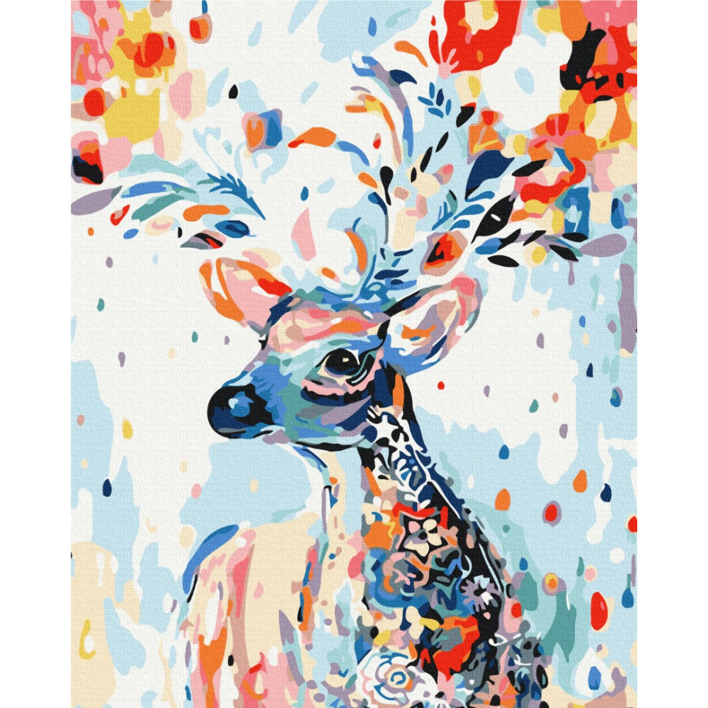 бполотно на лляній основі та дерев'яному підрамнику з нанесеною пронумерованою схемою майбутньої картини. Всі сегменти додатково пофарбовані в тон кольорів, якими буде зафарбовувати полотно