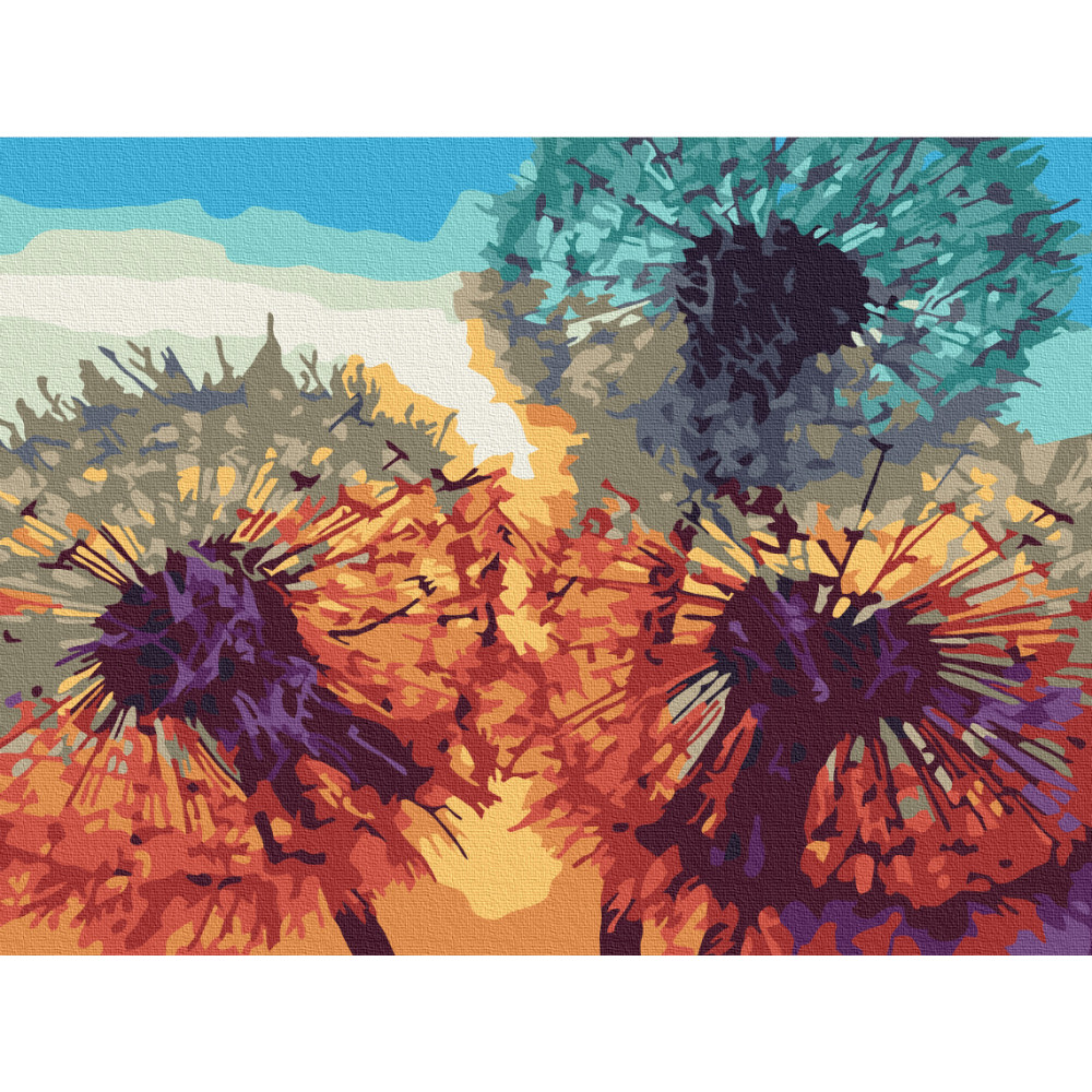 бполотно на лляній основі та дерев'яному підрамнику з нанесеною пронумерованою схемою майбутньої картини. Всі сегменти додатково пофарбовані в тон кольорів, якими буде зафарбовувати полотно