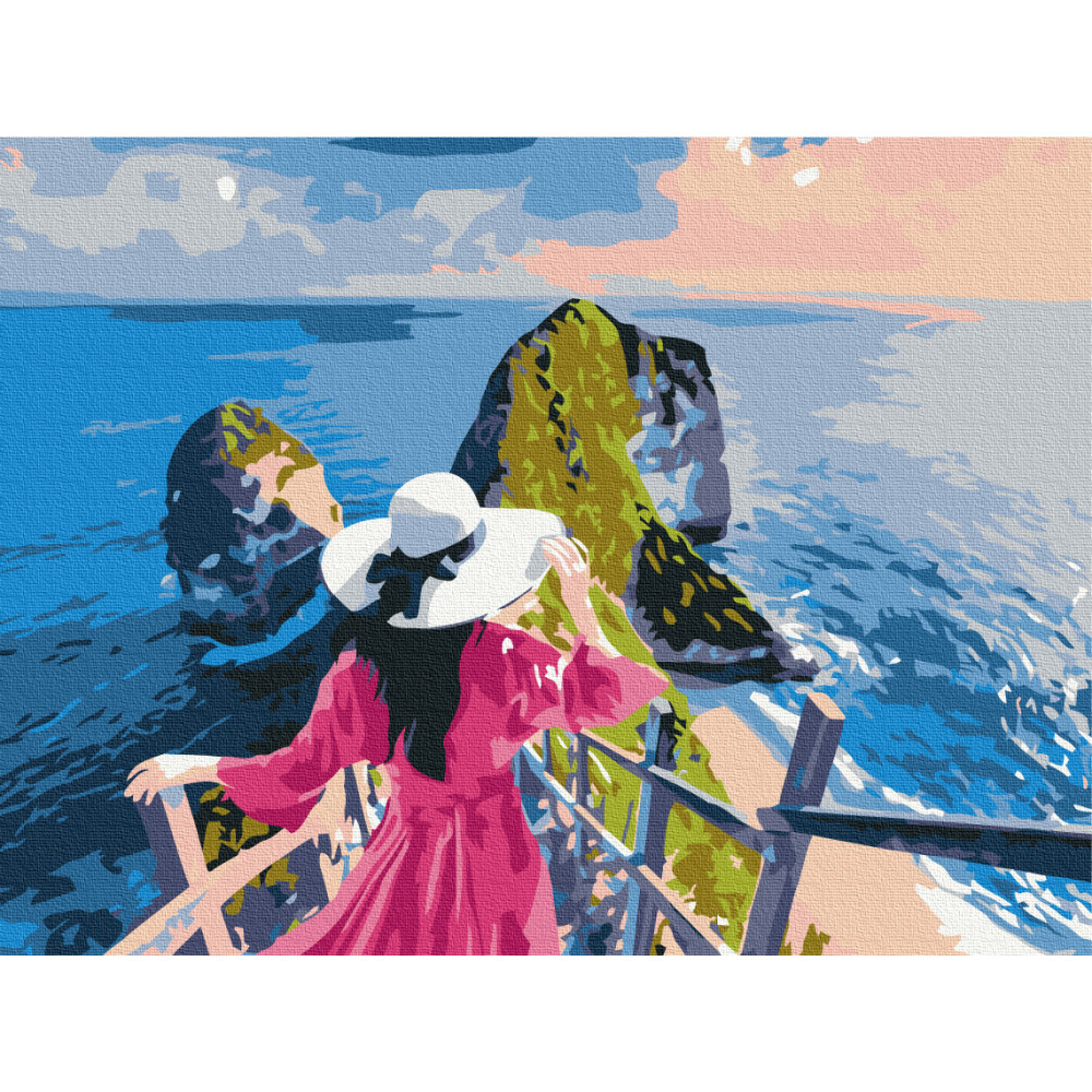 бполотно на лляній основі та дерев'яному підрамнику з нанесеною пронумерованою схемою майбутньої картини. Всі сегменти додатково пофарбовані в тон кольорів, якими буде зафарбовувати полотно