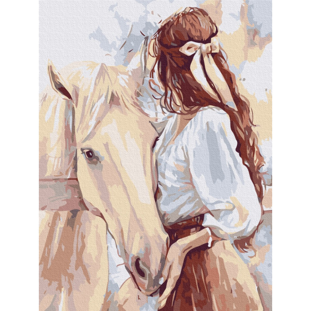бполотно на лляній основі та дерев'яному підрамнику з нанесеною пронумерованою схемою майбутньої картини. Всі сегменти додатково пофарбовані в тон кольорів, якими буде зафарбовувати полотно
