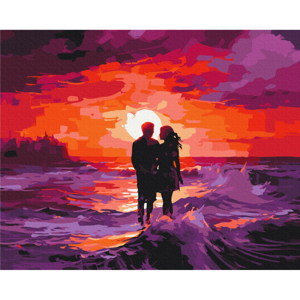 бполотно на лляній основі та дерев'яному підрамнику з нанесеною пронумерованою схемою майбутньої картини. Всі сегменти додатково пофарбовані в тон кольорів, якими буде зафарбовувати полотно