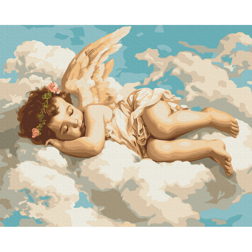 бполотно на лляній основі та дерев'яному підрамнику з нанесеною пронумерованою схемою майбутньої картини. Всі сегменти додатково пофарбовані в тон кольорів, якими буде зафарбовувати полотно