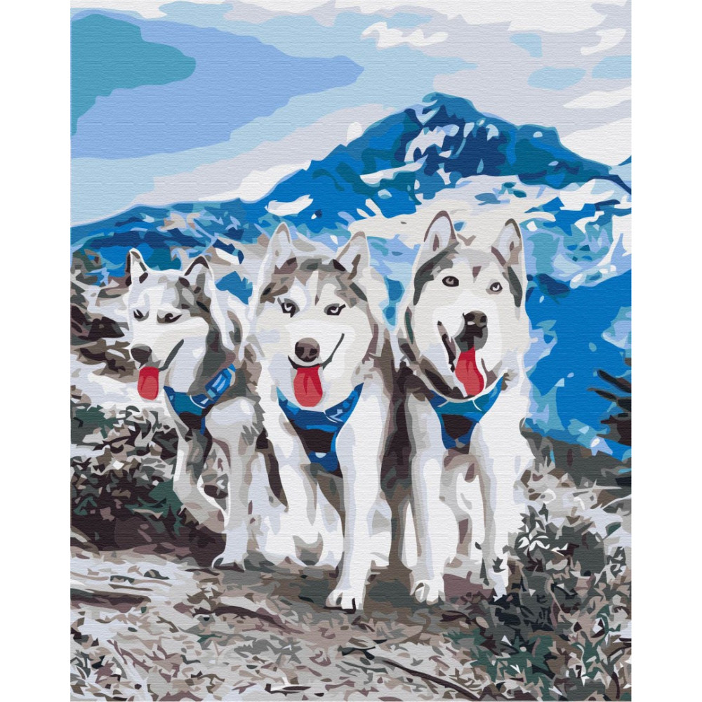 бполотно на лляній основі та дерев'яному підрамнику з нанесеною пронумерованою схемою майбутньої картини. Всі сегменти додатково пофарбовані в тон кольорів, якими буде зафарбовувати полотно
