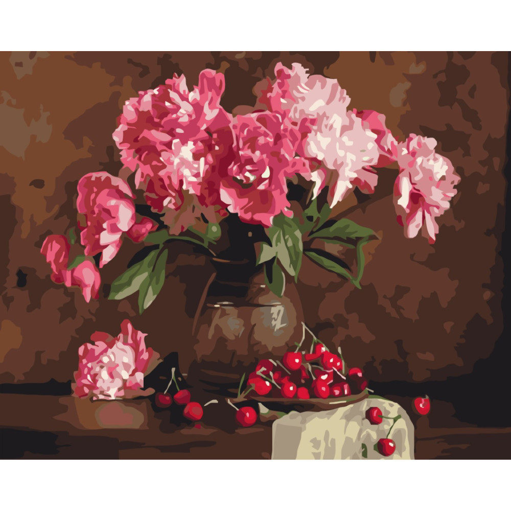 бполотно на лляній основі та дерев'яному підрамнику з нанесеною пронумерованою схемою майбутньої картини. Всі сегменти додатково пофарбовані в тон кольорів, якими буде зафарбовувати полотно