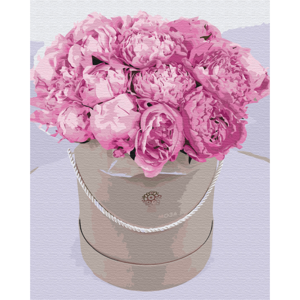 бполотно на лляній основі та дерев'яному підрамнику з нанесеною пронумерованою схемою майбутньої картини. Всі сегменти додатково пофарбовані в тон кольорів, якими буде зафарбовувати полотно