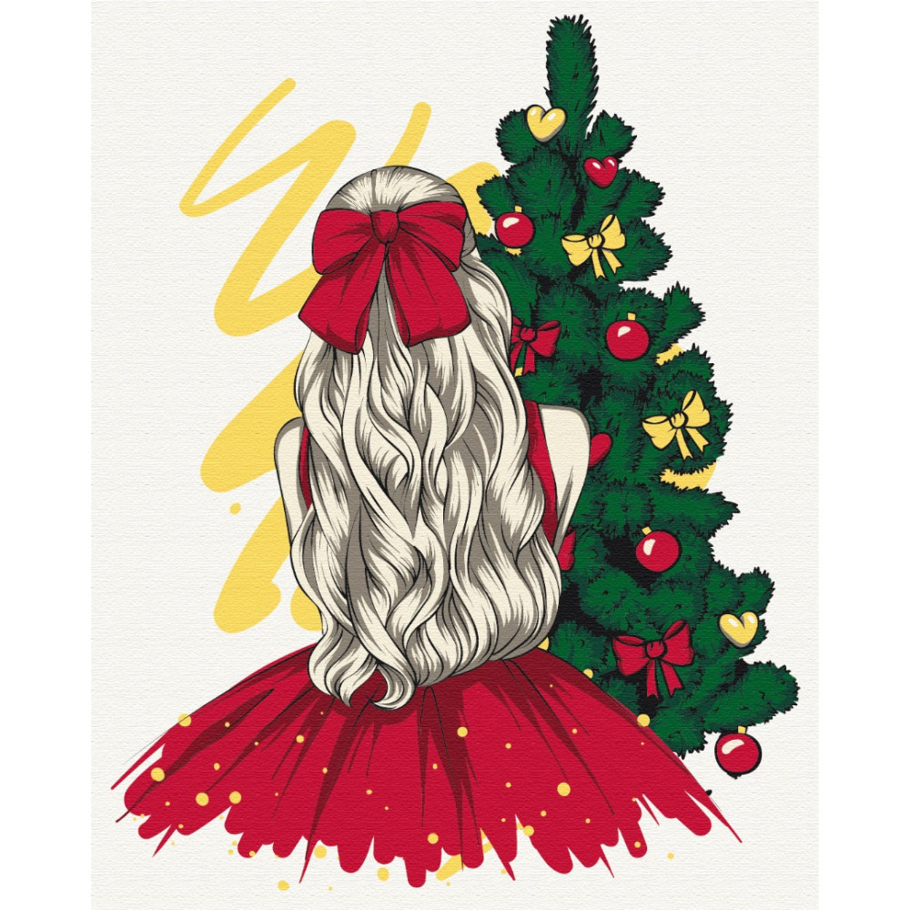 бполотно на лляній основі та дерев'яному підрамнику з нанесеною пронумерованою схемою майбутньої картини. Всі сегменти додатково пофарбовані в тон кольорів, якими буде зафарбовувати полотно
