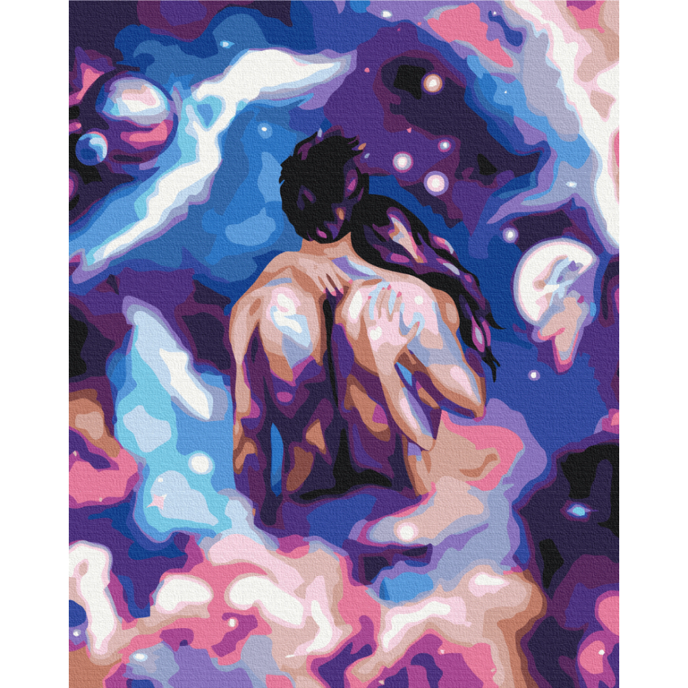 бполотно на лляній основі та дерев'яному підрамнику з нанесеною пронумерованою схемою майбутньої картини. Всі сегменти додатково пофарбовані в тон кольорів, якими буде зафарбовувати полотно