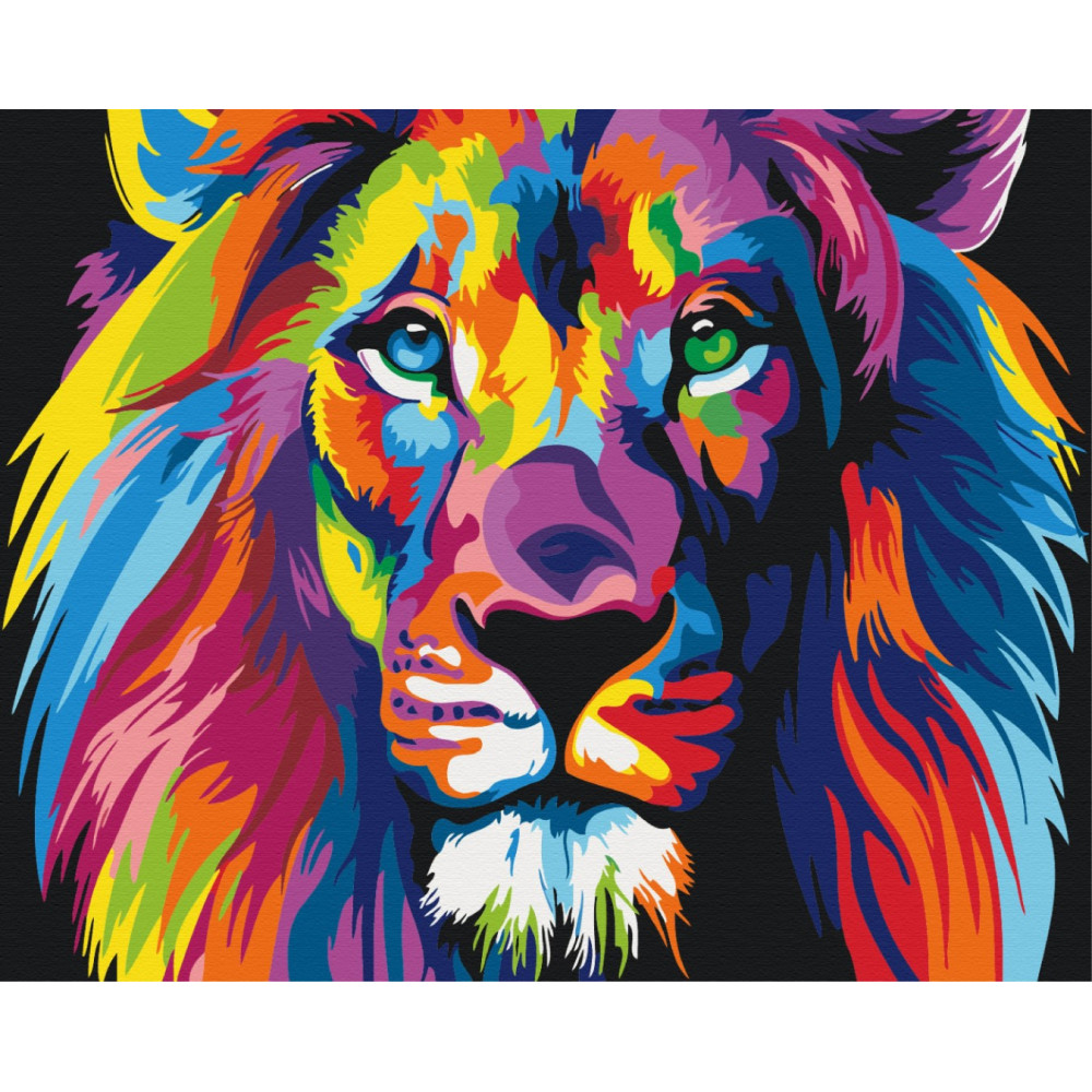 бполотно на лляній основі та дерев'яному підрамнику з нанесеною пронумерованою схемою майбутньої картини. Всі сегменти додатково пофарбовані в тон кольорів, якими буде зафарбовувати полотно