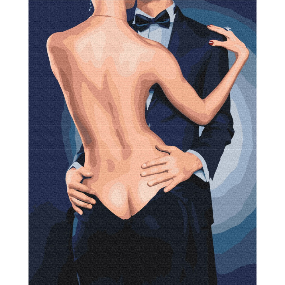 бполотно на лляній основі та дерев'яному підрамнику з нанесеною пронумерованою схемою майбутньої картини. Всі сегменти додатково пофарбовані в тон кольорів, якими буде зафарбовувати полотно