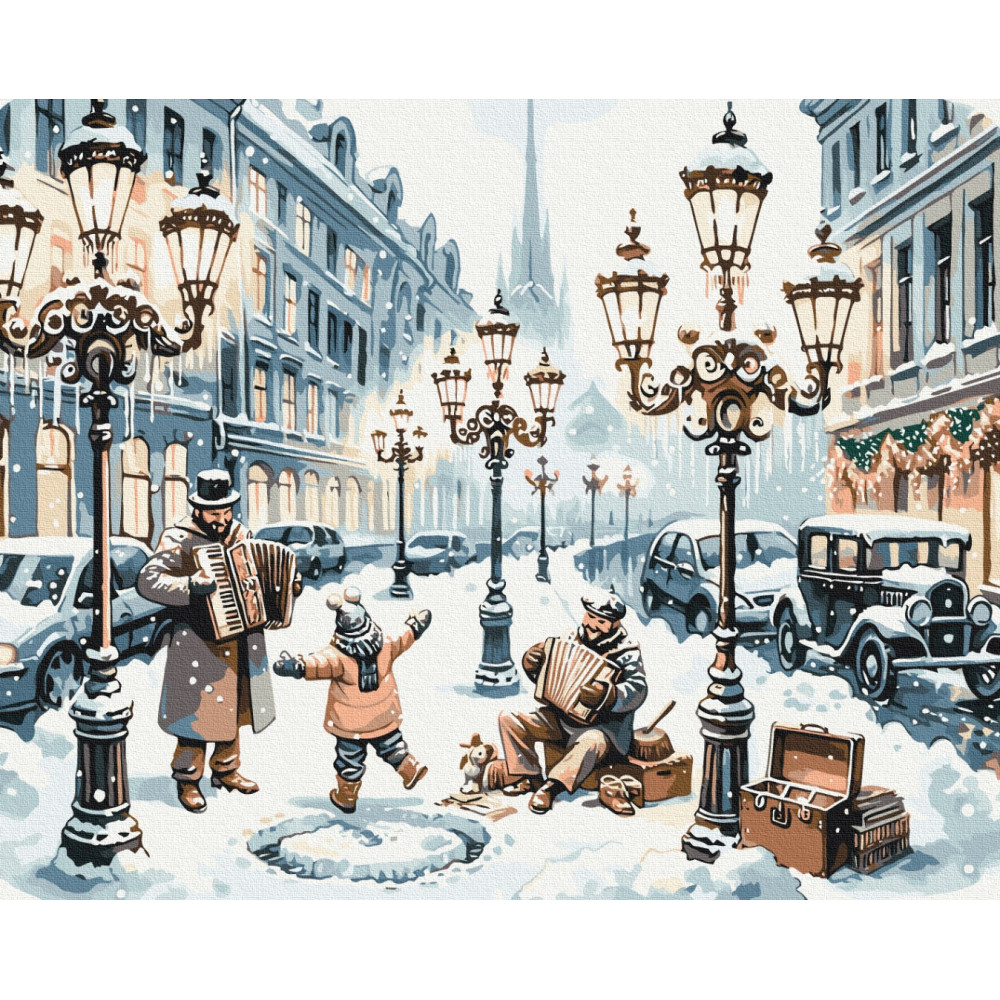 бполотно на лляній основі та дерев'яному підрамнику з нанесеною пронумерованою схемою майбутньої картини. Всі сегменти додатково пофарбовані в тон кольорів, якими буде зафарбовувати полотно
