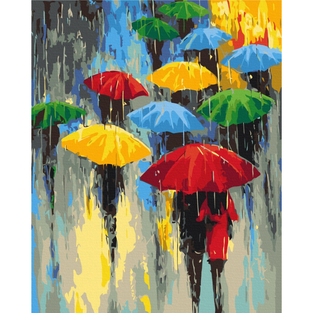 бполотно на лляній основі та дерев'яному підрамнику з нанесеною пронумерованою схемою майбутньої картини. Всі сегменти додатково пофарбовані в тон кольорів, якими буде зафарбовувати полотно