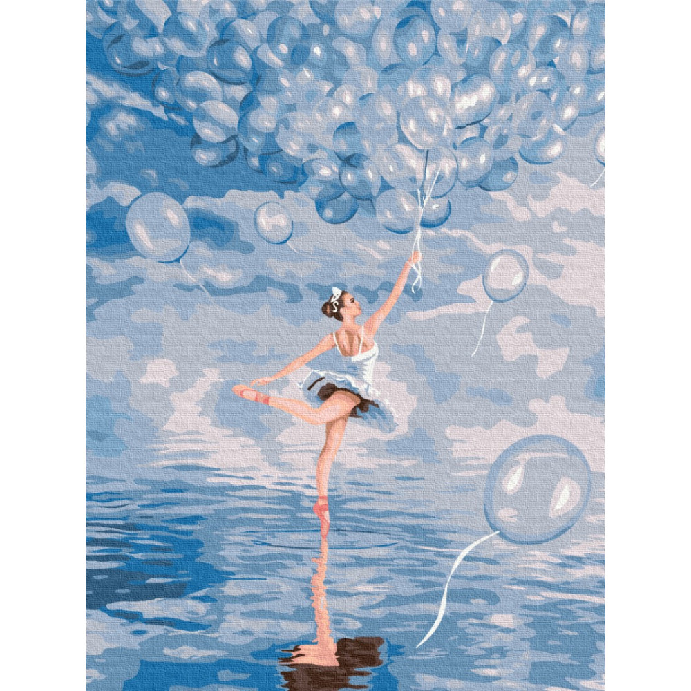 бполотно на лляній основі та дерев'яному підрамнику з нанесеною пронумерованою схемою майбутньої картини. Всі сегменти додатково пофарбовані в тон кольорів, якими буде зафарбовувати полотно