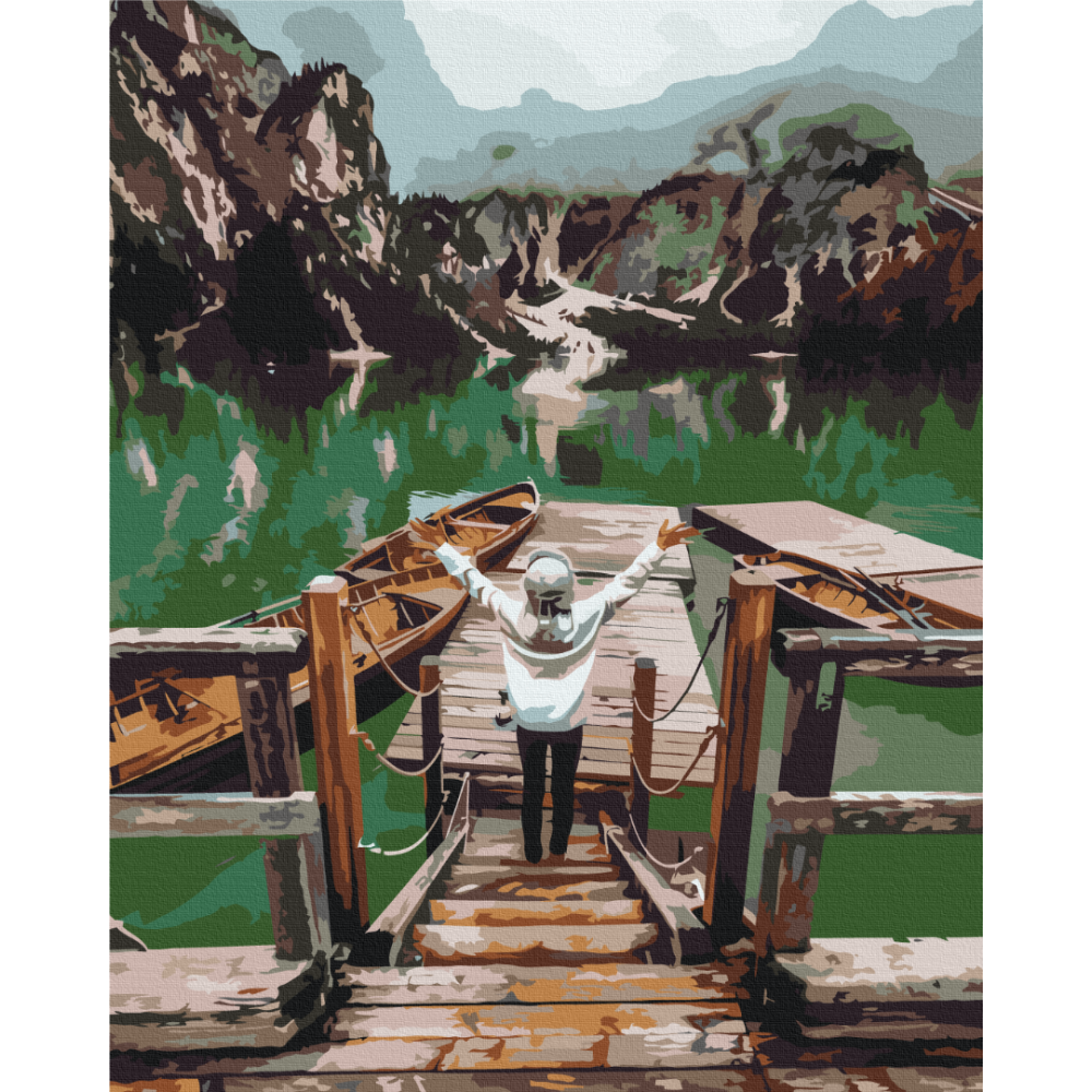 бполотно на лляній основі та дерев'яному підрамнику з нанесеною пронумерованою схемою майбутньої картини. Всі сегменти додатково пофарбовані в тон кольорів, якими буде зафарбовувати полотно
