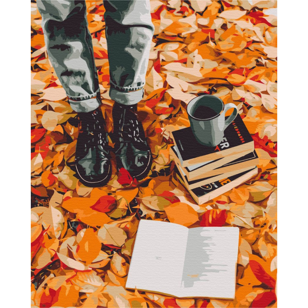 бполотно на лляній основі та дерев'яному підрамнику з нанесеною пронумерованою схемою майбутньої картини. Всі сегменти додатково пофарбовані в тон кольорів, якими буде зафарбовувати полотно