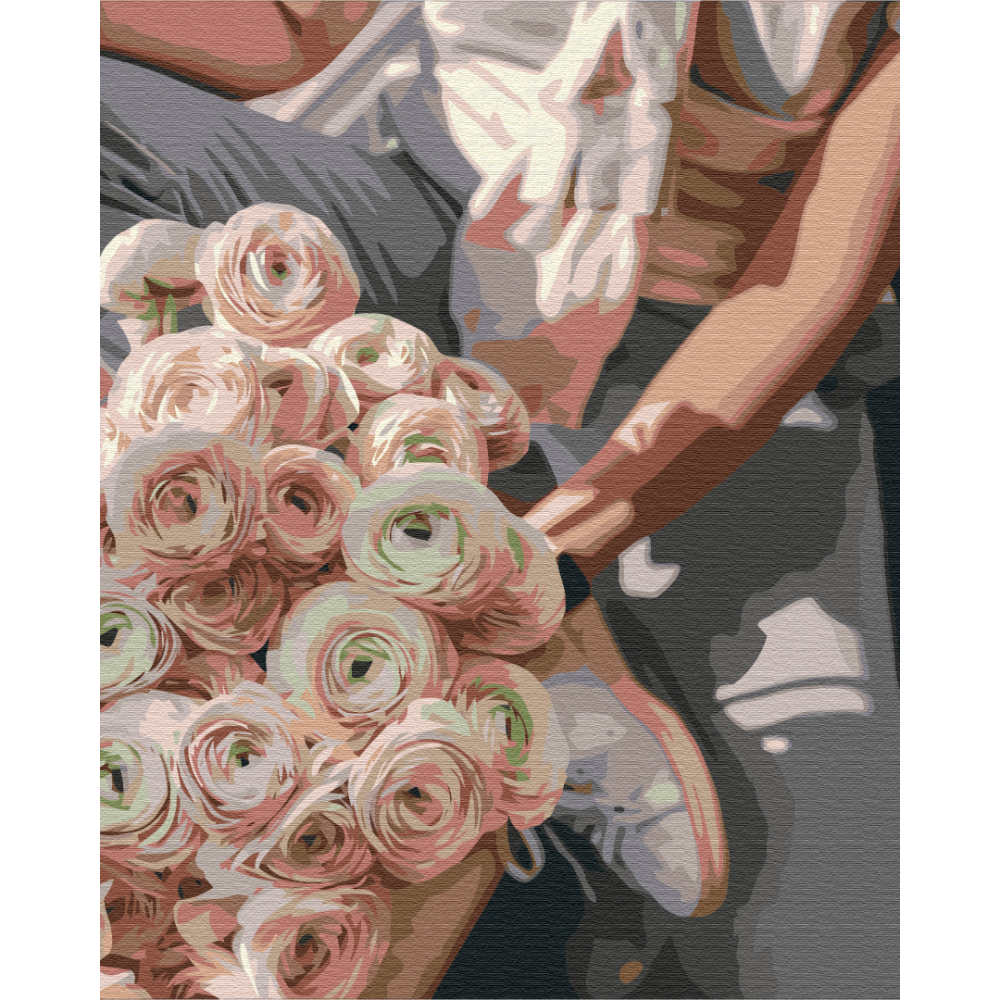 бполотно на лляній основі та дерев'яному підрамнику з нанесеною пронумерованою схемою майбутньої картини. Всі сегменти додатково пофарбовані в тон кольорів, якими буде зафарбовувати полотно