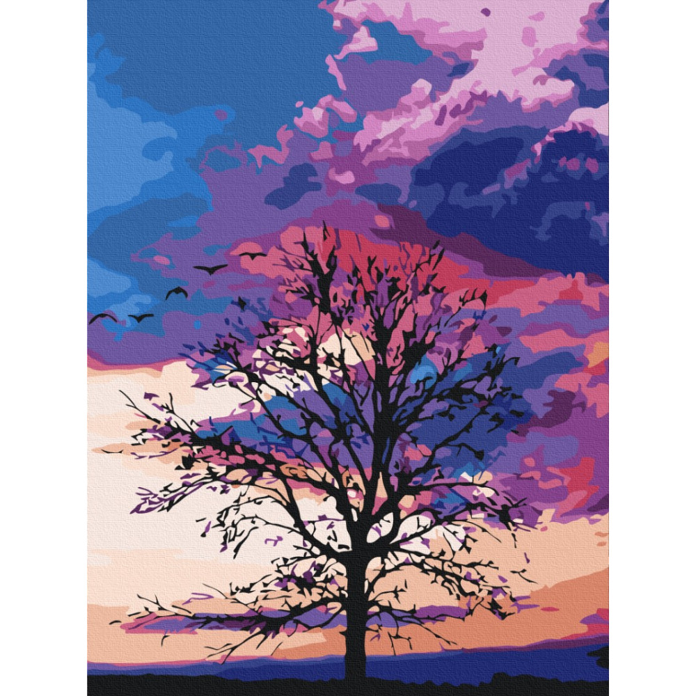 бполотно на лляній основі та дерев'яному підрамнику з нанесеною пронумерованою схемою майбутньої картини. Всі сегменти додатково пофарбовані в тон кольорів, якими буде зафарбовувати полотно