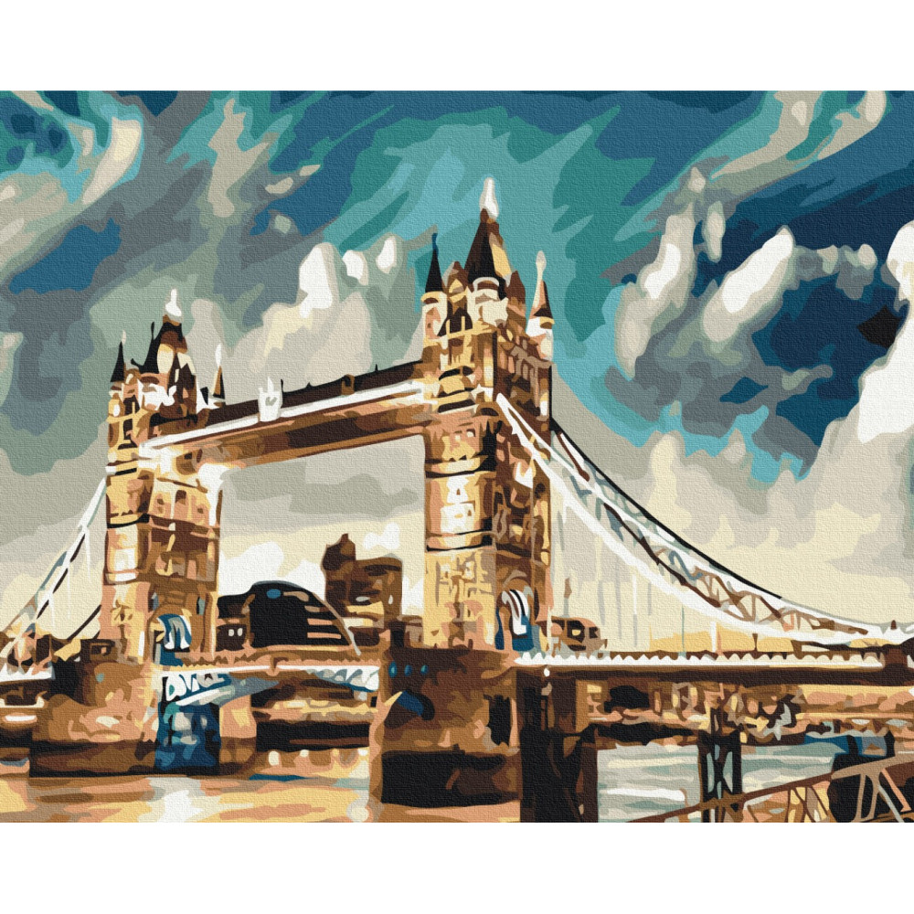 бполотно на лляній основі та дерев'яному підрамнику з нанесеною пронумерованою схемою майбутньої картини. Всі сегменти додатково пофарбовані в тон кольорів, якими буде зафарбовувати полотно