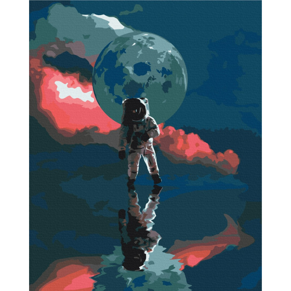 бполотно на лляній основі та дерев'яному підрамнику з нанесеною пронумерованою схемою майбутньої картини. Всі сегменти додатково пофарбовані в тон кольорів, якими буде зафарбовувати полотно