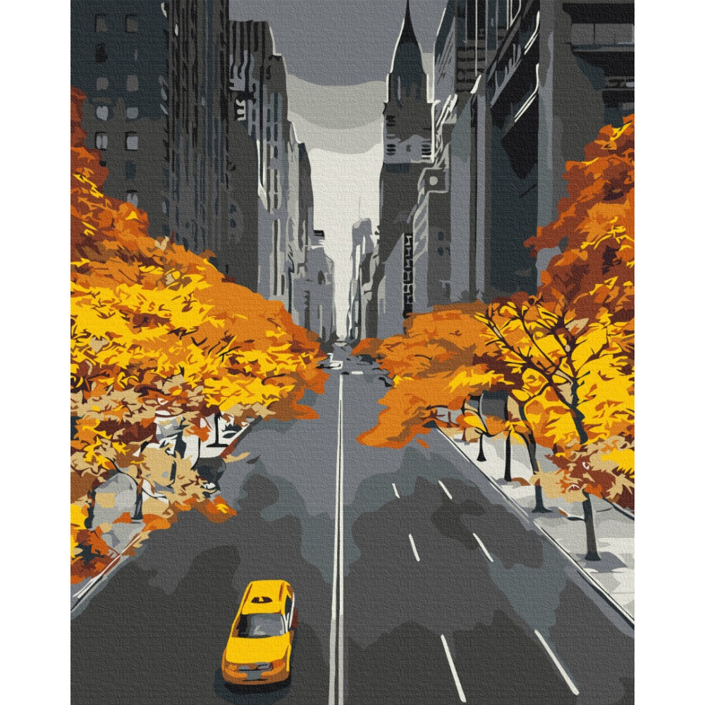 бполотно на лляній основі та дерев'яному підрамнику з нанесеною пронумерованою схемою майбутньої картини. Всі сегменти додатково пофарбовані в тон кольорів, якими буде зафарбовувати полотно