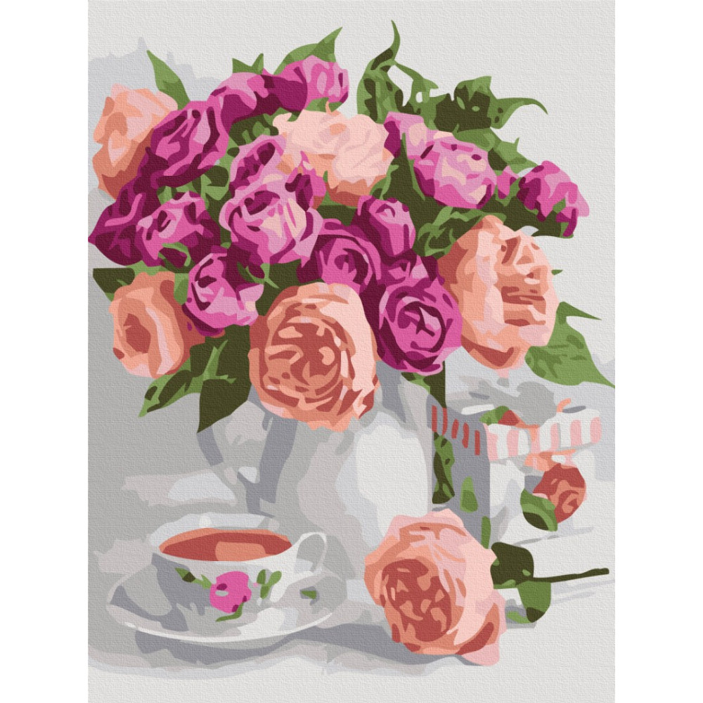 бполотно на лляній основі та дерев'яному підрамнику з нанесеною пронумерованою схемою майбутньої картини. Всі сегменти додатково пофарбовані в тон кольорів, якими буде зафарбовувати полотно