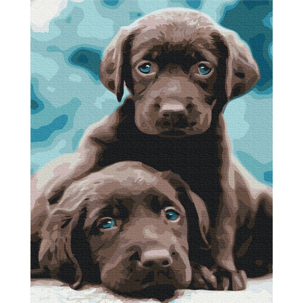 бполотно на лляній основі та дерев'яному підрамнику з нанесеною пронумерованою схемою майбутньої картини. Всі сегменти додатково пофарбовані в тон кольорів, якими буде зафарбовувати полотно