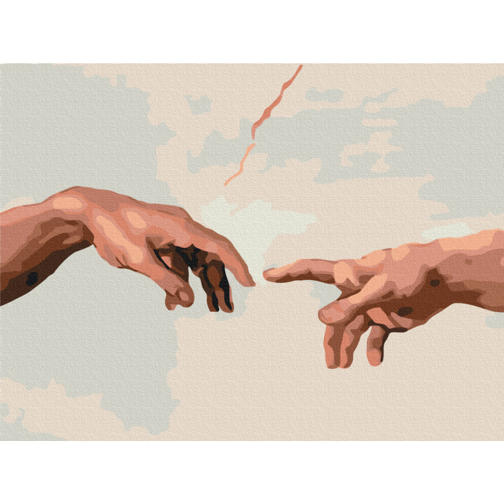 бполотно на лляній основі та дерев'яному підрамнику з нанесеною пронумерованою схемою майбутньої картини. Всі сегменти додатково пофарбовані в тон кольорів, якими буде зафарбовувати полотно