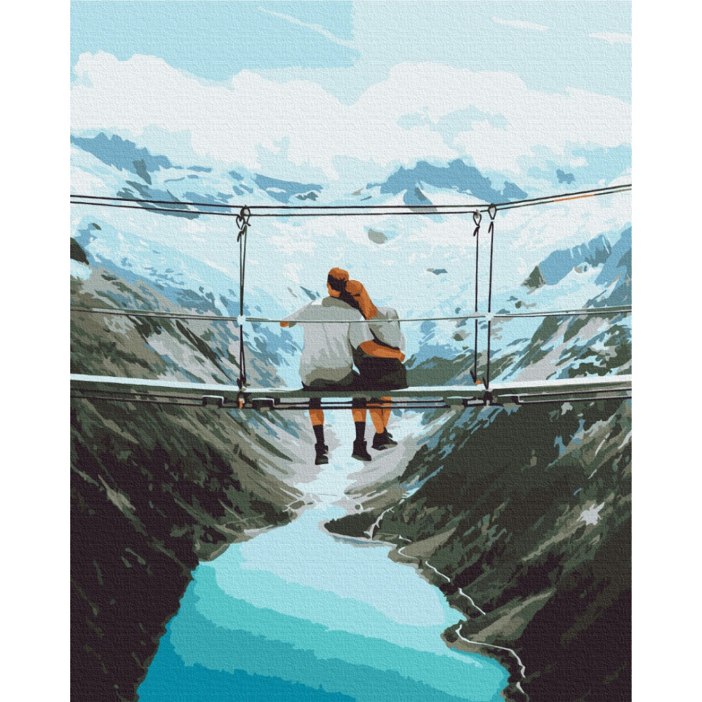 бполотно на лляній основі та дерев'яному підрамнику з нанесеною пронумерованою схемою майбутньої картини. Всі сегменти додатково пофарбовані в тон кольорів, якими буде зафарбовувати полотно