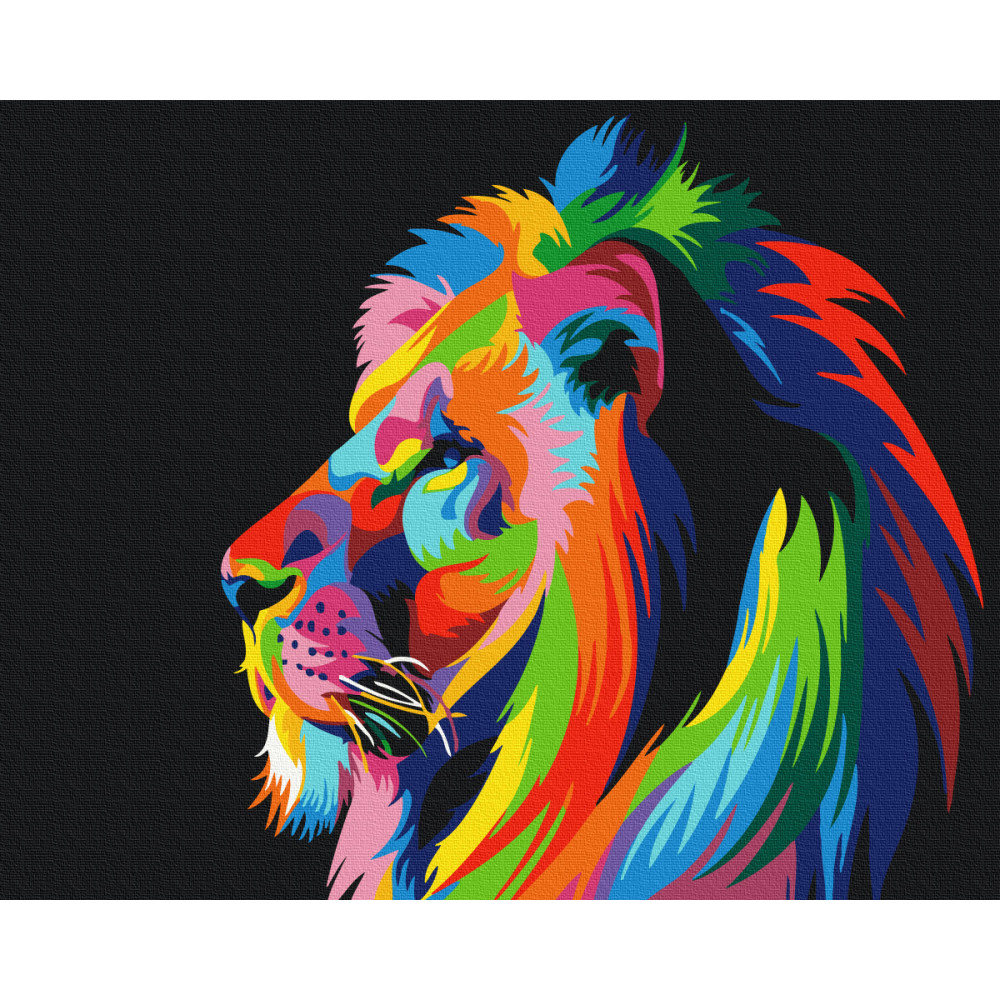 бполотно на лляній основі та дерев'яному підрамнику з нанесеною пронумерованою схемою майбутньої картини. Всі сегменти додатково пофарбовані в тон кольорів, якими буде зафарбовувати полотно