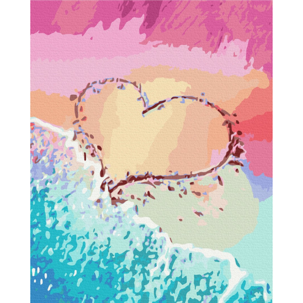 бполотно на лляній основі та дерев'яному підрамнику з нанесеною пронумерованою схемою майбутньої картини. Всі сегменти додатково пофарбовані в тон кольорів, якими буде зафарбовувати полотно