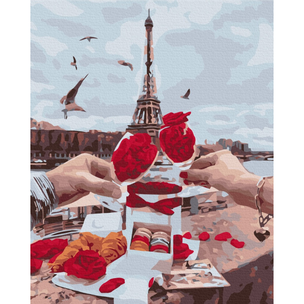 бполотно на лляній основі та дерев'яному підрамнику з нанесеною пронумерованою схемою майбутньої картини. Всі сегменти додатково пофарбовані в тон кольорів, якими буде зафарбовувати полотно